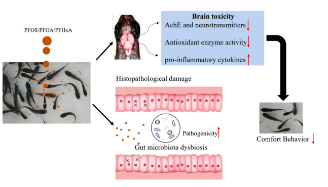 全氟和多氟烷基物质(PFAS)与多种健康问题相关,包括癌症和免疫系统影响,且在淡水鱼中的生物累积现象尤为严重,PFAS在淡水鱼中的积累不仅影响鱼类的健康,还可能通过食物链影响其他动物和人类。本研究以淡水水生动物鲫鱼为模型对全氟和多氟烷基物质(PFAS)的神经毒性和菌群紊乱进行研究,证明了PFAS对鲫鱼有神经毒性,并导致菌群紊乱。研究成果为评估全氟和多氟烷基污染物在水生环境浓度下的毒性提供了启示。