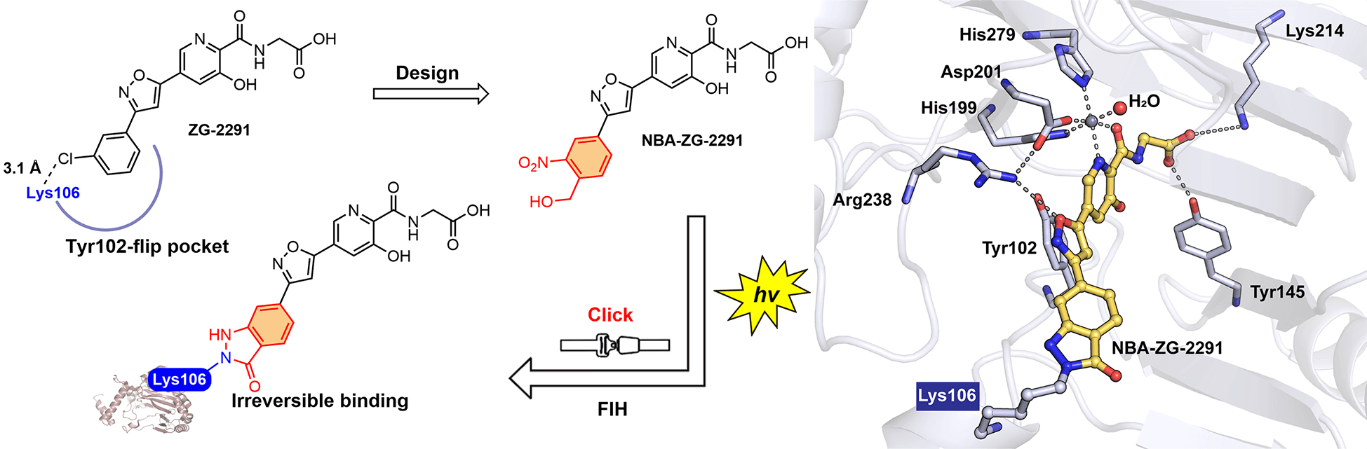 图:光控赖氨酸靶向FIH共价抑制剂NBA-ZG-2291设计思路