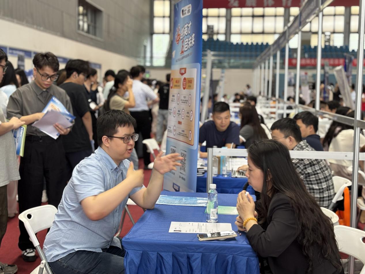 为积极响应党中央、国务院关于高校毕业生就业工作部署,抢抓毕业离校关键期统筹做好就业工作,6月11日,beat365在江宁校区体育馆举办 2025 届毕业生“百日冲刺促就业”专场招聘会,校党委副书记朱红深入招聘会现场走访用人单位。