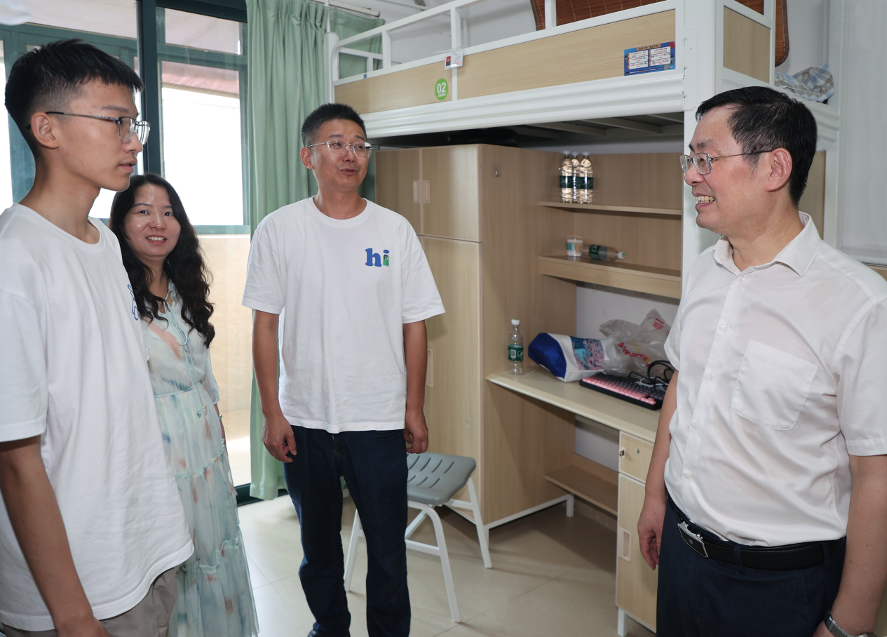 戴建君先后走访志愿者点位、交通道路、门诊部、新生宿舍、新生报到点等迎新工作现场,对改善校园交通、优化迎新环节等提出工作要求。走访中,戴建君与新生及家长亲切交谈,代表学校对新生的到来表示热烈欢迎。在新生报到点,戴建君详细了解了新生报到、绿色通道设置、各学院迎新安排等情况。在校园门诊部,戴建君向医务人员表示问候,要求进一步改进体检流程,确保新生入学体检工作高效有序开展。在新生宿舍,戴建君实地查看住宿环境,勉励新生积极融入集体,在校园里收获知识与成长。