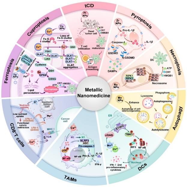 图1:金属纳米药物通过多重机制重塑免疫生态位赋能肿瘤治疗示意图