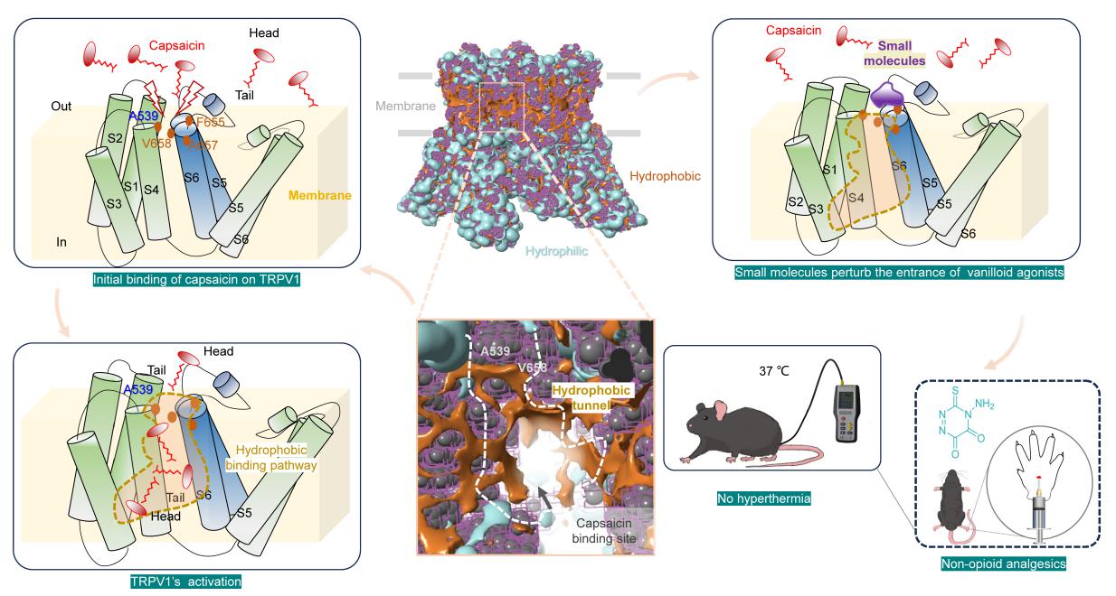 该研究不仅深化了TRPV1通道功能的理解,也从机制上提出了靶向调控其配体进入路径的新策略,为非阿片类镇痛药物的精准研发提供了新方向。