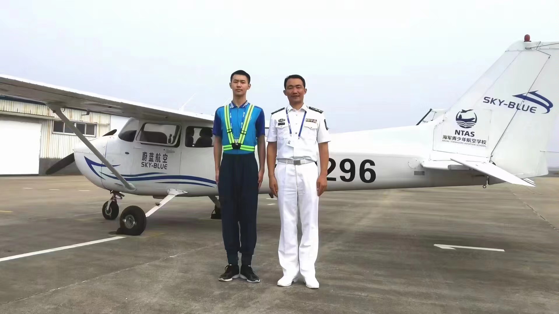 这位来自江西省南昌市第二中学的帅小伙儿,名叫何森育。2019年,怀揣着驾驶舰载机、随航母出征的梦想,他经过重重选拔,进入海军航空实验班。高中期间,何森育不仅注重文化课程的学习,而且接受过飞行员教育,曾经驾驶塞斯纳172R型飞机“冲上云霄”。
