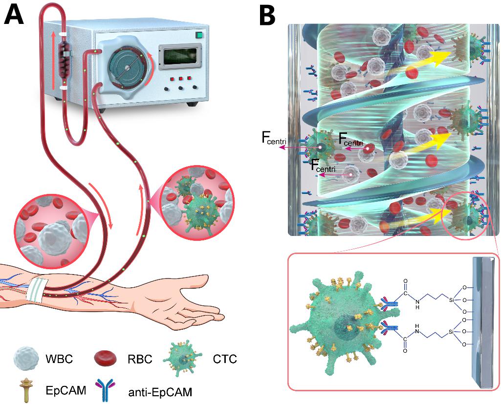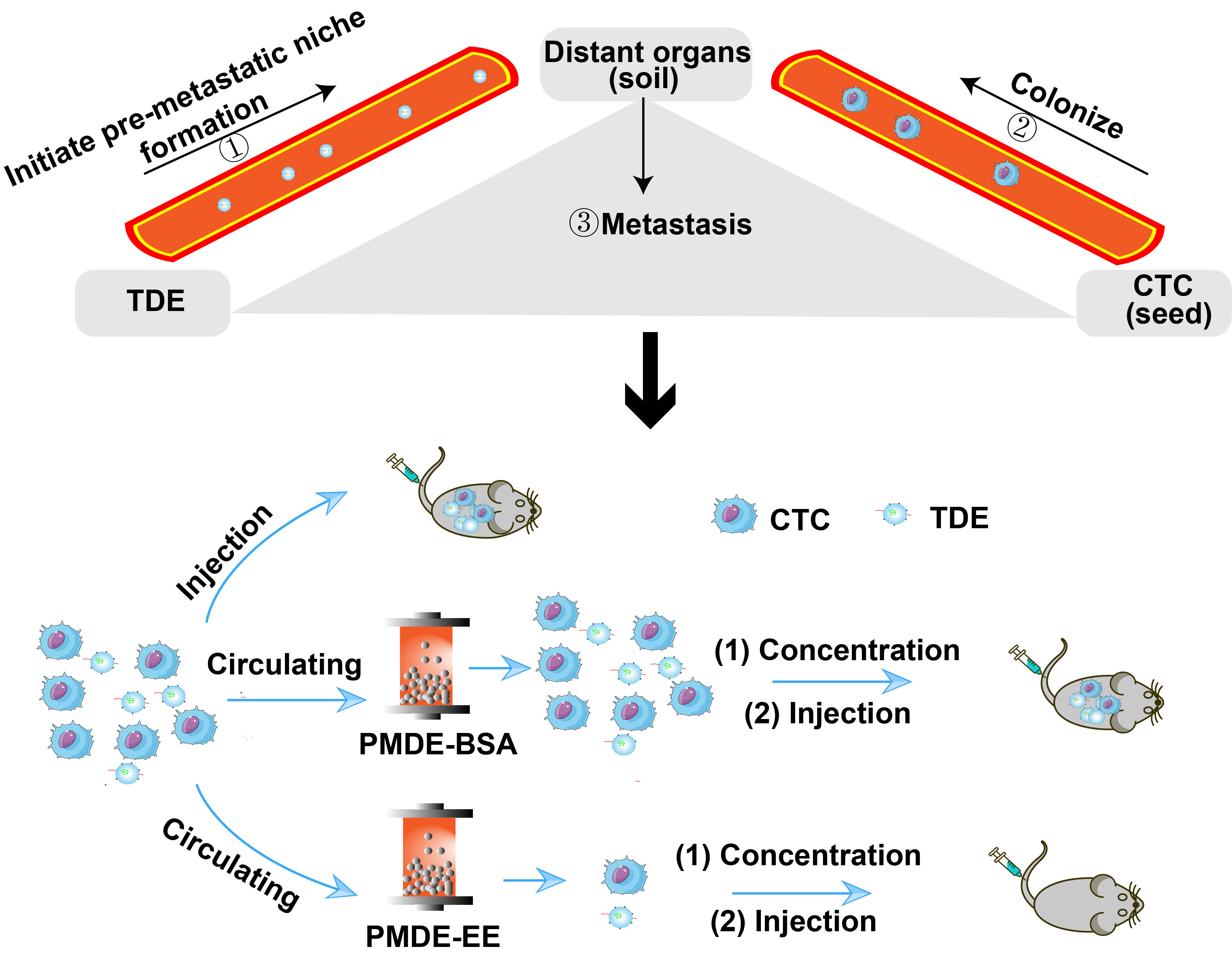 促转移衍生物净化装置捕获并清除CTCs和TDEs示意图